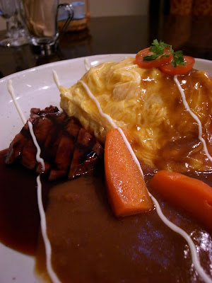 因為想吃的店沒開,所以很不甘心地走進一家高級西餐廳,點了蛋包飯XD